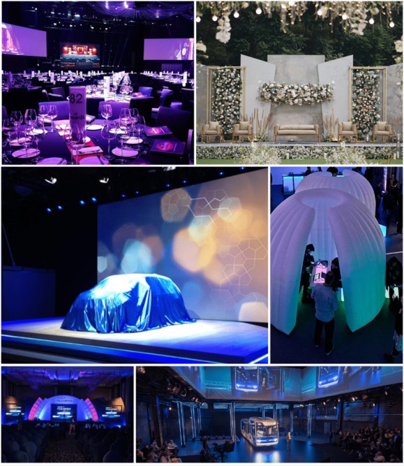 custom backdrops, trussing, and state-of-the-art LED screens for immersive visuals and